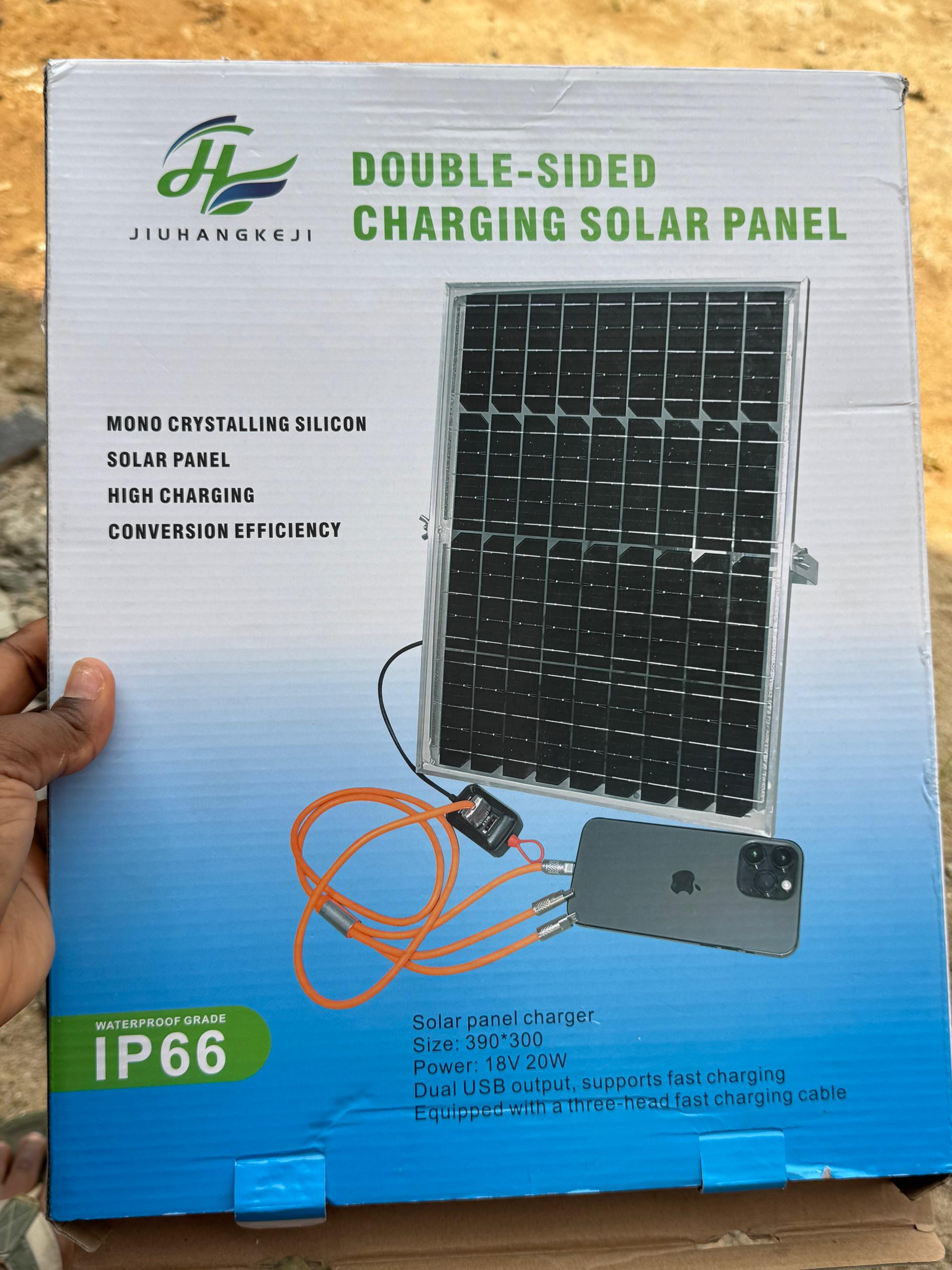 "I was doubting before but when I recieved it and test it, wow! It charge my phone very fast even on a cloudy day. Now I charge my phone, my wifes phone and my powerbank together. No more spending money at charging place. The delivery was very fast and the man even call me before he come. Best investment I made this year. Am even planning to buy second one for my mother."